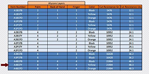 -. Feature : One Pair A4B37Y Cut Resistant Alycore Protective Gloves, Size SMALL. / Alycore is one of the most protective materials, offering highest level of cut, puncture and needle resistance. 8 layers in palm, 4 layers on back of hand, 4 layers in fingers. / Cut Level 5+, Armor Skin and Synthetic Leather, Knit back of hand for breathable glove wear. / Cut and stab resistant gloves, resist needle punctures, glass cuts, offer 20lbs of resistance from puncture. / High Visibility Yellow with black, velcro wrist for more comfortable wear.