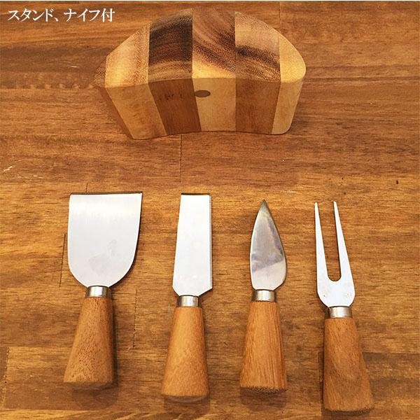 専用ナイフが4本セットになった、アカシア素材のチーズボードです。