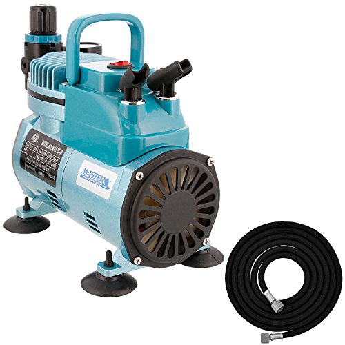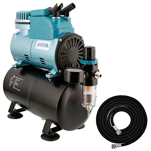 Powerful: At 1/5 Horsepower this unit delivers more Air Volume (CFM) and Air Pressure (PSI) than any airbrush demands. Portable: Light-Weight, Compact and are Easy to Carry with the Built in Handle. Precise Air Adjustment: True Diaphram Pressure Regulator with Gauge and Water Trap Filter that provides precise adjustment of airflow and will ensure clean, dry air. Automatic On/Off Shutoff: Preset for automatic turn off when air tank reaches 60 PSI. Preset for automatic turn on when air tank pressure is below 35 PSI. This enables a longer compressor life from less motor wear and heat-related moisture. Constant Pressure and Zero Pulsation: Air is drawn from the large air storage tank providing you a constant regulated pressure. There's zero pulsation because air is drawn from the tank which eliminates any pulsation effect from the pistons. "Air-On-Demand": Designed to work only when you do, produces air on demand at the your regulated pressure. Thermally Protected: Automatically turns itself off if the unit becomes over heated. Maintenance Free: Oil-less Piston Motor Low Noise: Very Quiet Operation, only 59 db. Full 2-Year Warranty, so you can be assured of Quality and Reliability.Feature