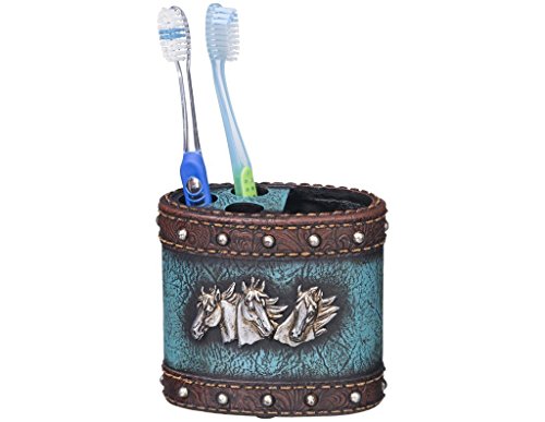 Tough-1 Western Toothbrush Holder Horse Head Leather Look Blue 87-2183