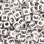 White Plastic Cube Alphabet Beads, Small, 6mm, Letter E, 100 pcs