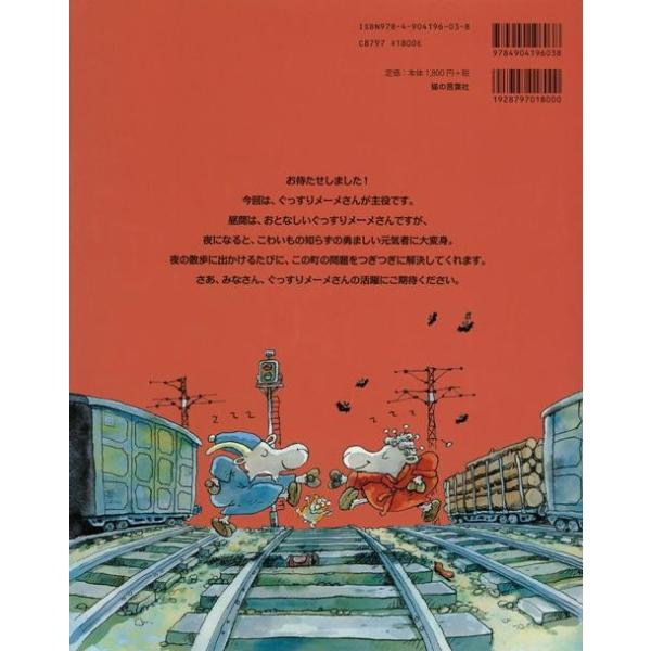 【商品説明】 定価(税込み):1,944円 値引き:10% OFF 夜のお散歩が大好きなぐっすりメーメさんは、毎晩あちこちに出かけます。ある時は、ソーセージ工場へ。また、ある時は、遊園地へ。朝、起きると、どこに行ったか全く覚えてないけれど、なぜか、町の問題を次々に解決してくれます。ぐっすりメーメさんの活躍をお楽しみに! バーゲンブック 新品 特価 格安 |