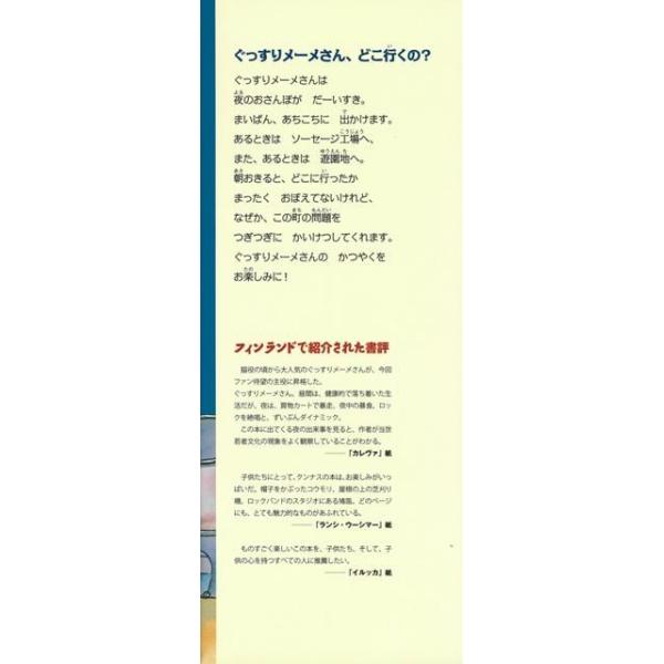 【商品基本情報】 商品名称:ぐっすりメーメさん夜のおさんぽ? 著者/出版社:マウリ・クンナス猫の言葉社/マウリ・クンナス猫の言葉社 初版発行日:2009/10/26 サイズ:A4変判 ページ数:39 ISBN/JAN:9784904196038/4528189570672