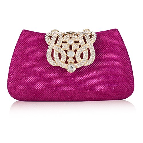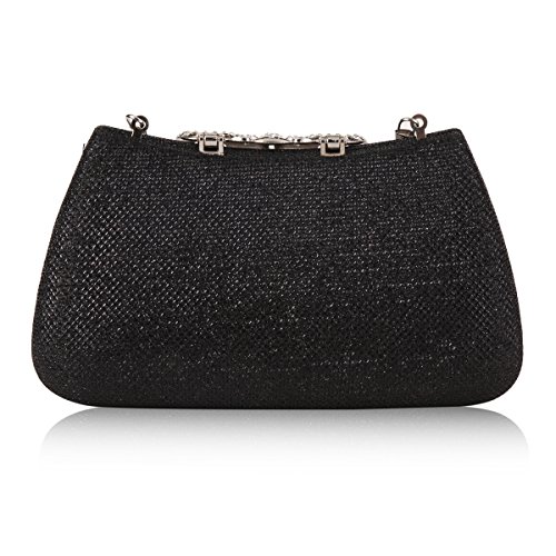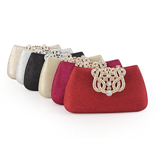 The stunning evening bag features a hardbox frame with gauze paillette shell material and interior corduroy fabric.It has a jewel-studded crown-shape hasp closure on the front and 2 detachable chains,a long one (drop 60cm/23.62inch) and a short one (drop 17cm/7 inch), which makes it can be carried as clutch ,a shoulder bag, a crossbody bag or just a handbag.Interior is a compartment for big mobile phone ,cash ,cards ,lipstick and other important items.The bag is so royal, noble and brilliant that it will be a perfect status symbol and a bold gift for femininity.Suitable for wedding party, family reunion, prom, banquet and cocktail party and so on .