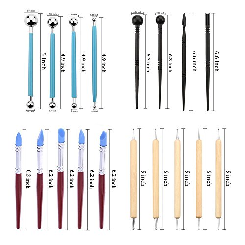 【Great DIY Painting Tools】Smooth, comfortable to hold & convenient to use. Great Tool for DIY clay and Carving Art projects, suitable for both home and school projects use. 18 pcs Clay Tools: 5x double sided dotting tools, 5x rubber tip pens, 4x ball stylus, 4x plastic modeling tools, all in different sizes.