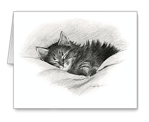 -. Feature : "Tabby Kitten" artwork by artist DJ Rogers. / Note card size is 4.25 x 5.5 inches / Matching white envelopes included. / Note cards are blank inside for your personal message. / Suitable for framing.