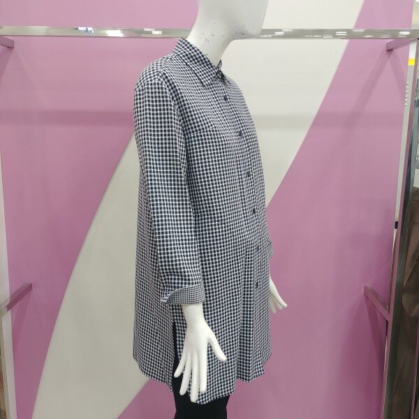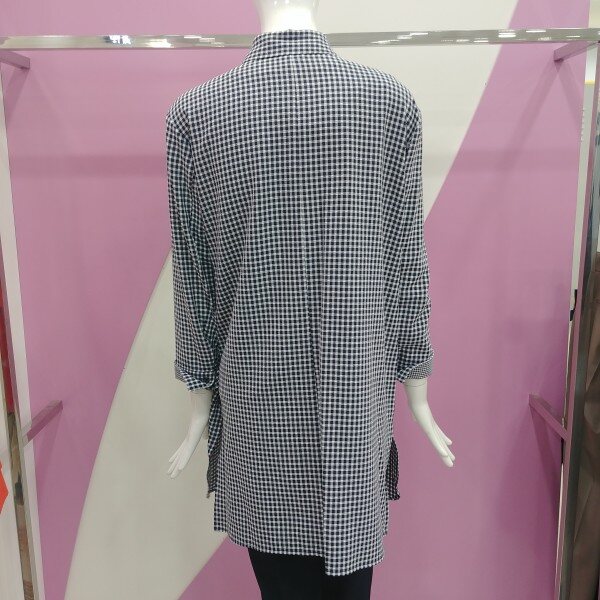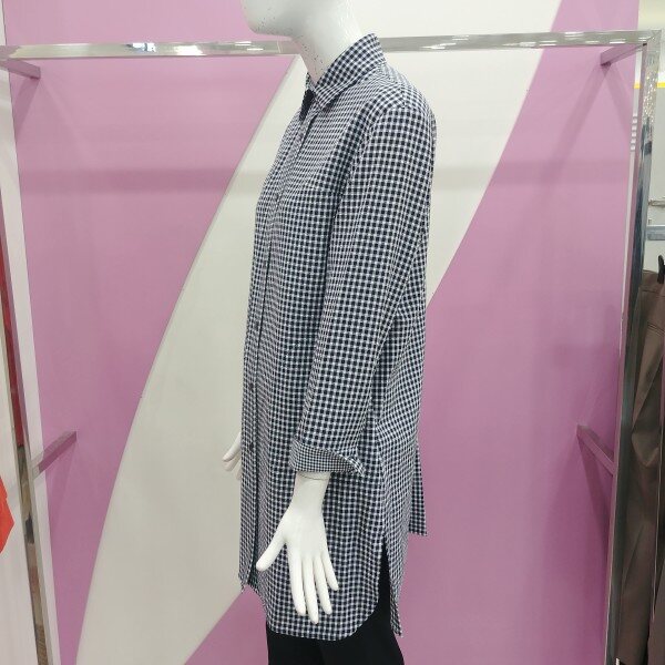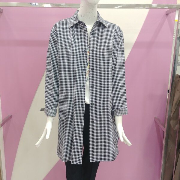 가을신상으로 잔체크로 세련되게 표현한 셔츠형 롱 자켓.소매배색으로 포인트를 주어 더욱더 멋스럽게 착용 가능한 자켓.정사이즈 구매.