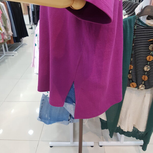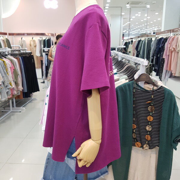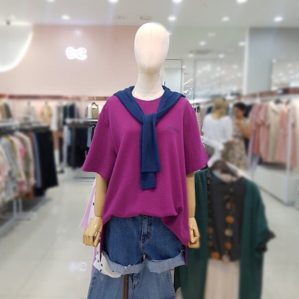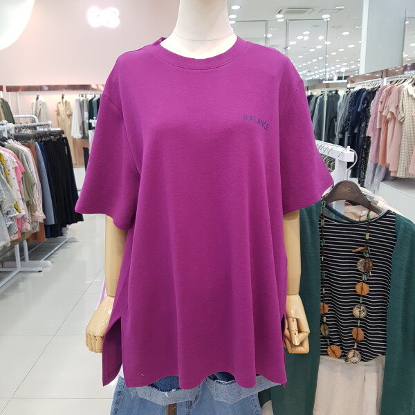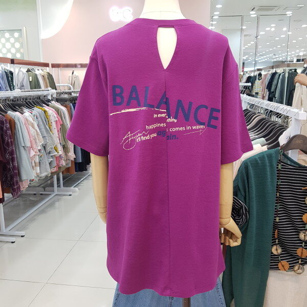 기본라운드넥선에 깔끔한 라인과 백라인의 목선 프린트 포인트로 반전감있는 티셔츠