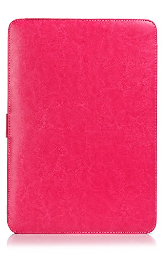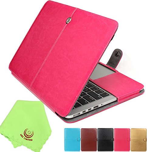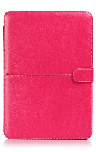 UESWILL Soft PU Leather Folio Sleeve Case Notebook Laptop Bag Carrying Pouch Cover for Apple Macbook Pro 13" with Retina Display + Microfibre Cleaning Cloth, Hot Pink