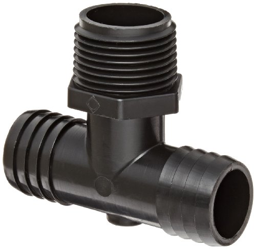 Thogus Polypropylene Tube Fitting, Tee, Black, 1/2" Barbed x 1/2" Barbed x 1/4" NPT Male (Pack of 10)