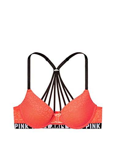 Victoria's Secret Pink Strappy Back Leopard Lace Push-Up 36B Neon Coral
