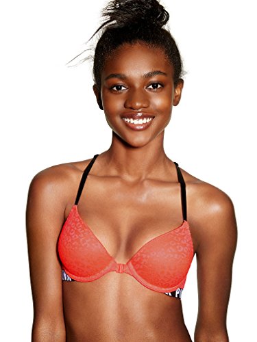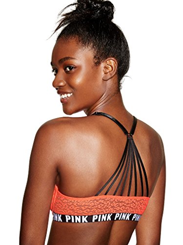 Victoria's Secret Pink Strappy Back Leopard Lace Push-Up 34B Neon Coral