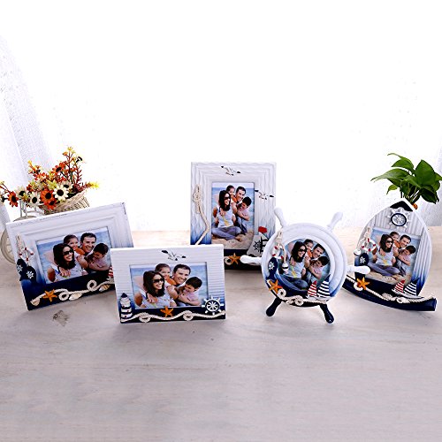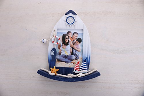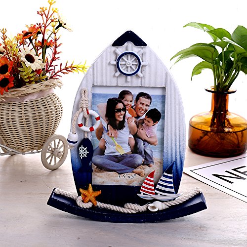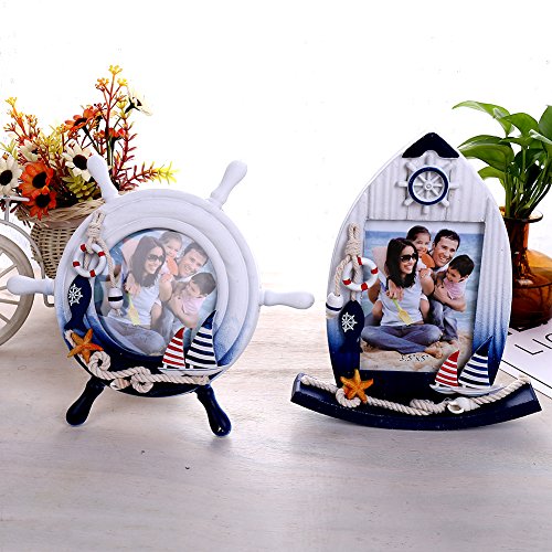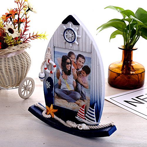 Solid Wooden Photo Frame 3.5x5 inch Size Mediterranean Family Office University Bedroom Gifts Creative Decoration Frame Blue and White Rocking Boat Shape