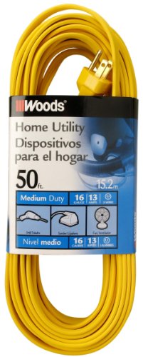 Woods 0832 SPT-2 16/3 Flat Utility Extension Cord, 50-Foot, Yellow
