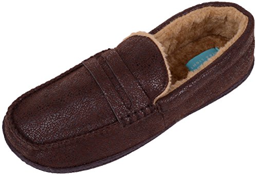 Product DescriptionMens / Gents Vinyl Style Slip On Slippers / Moccasin Style / Indoor Shoes. Sizes US 7 - 12. Vinyl Style Uppers. Faux Fur Lining for Warmth and Comfort. Soft Padded Inside. Hardwearing Outdoor Rubber Sole for Grip. Easy Slip On Design.0
