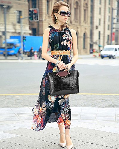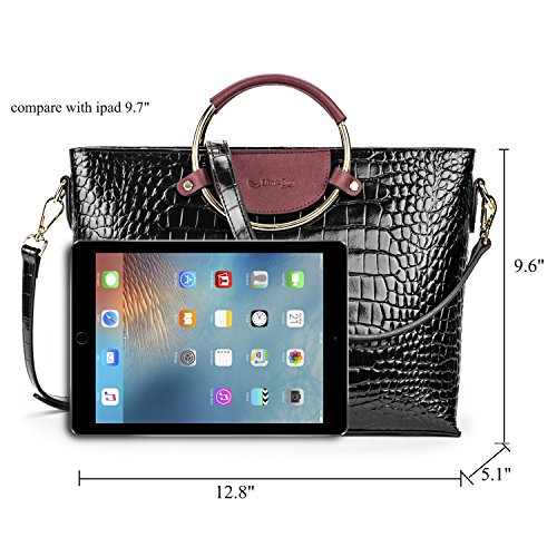 -. Feature : Material: Made with real leather (embossed crocodile pattern) and polyester lining,detailed streamlined stitching, leather around metal hand.top zipper open closure. / Dimension: 12.8"(L)*5.1"(W)*9.6"(H),the metal hand diameter 5.3",easy keep all your daily thing like ipad/phone/book/purse/wallet/papers/umbrella/key/cosmetic tool/key etc. / Pocket: inerior one large main pocket and 1 middle pocket compartment by 1 zipper pocket,one side with two phone card open slot and one a small zipper pocket in the other side. / Carry styles: bag come with a removeable and adjustable strap, easy conveient to wear it as a top handle bag/ handbag/shoulder bag/ crossbody bag. / Occations: calssic design and luxury looking handbag suit any occasion .you can take it for working/shopping/dating/business casual/formal/wedding.
