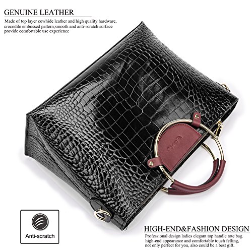 -. Title : Utotebag Top Handle Tote Bag Ladies Genuine Leather Crocodile Embossed Purses and Handbags for Women