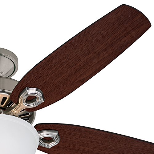 This fan is a mainstay in the Hunter product line. The casual, traditional style will compliment your room without overpowering it. With a 52-inch blade span, a variety of finish options, and the ability to install with or without the light kit, this fan is perfect for standard or large rooms, and it's flexible enough to fit almost any space you choose.Feature