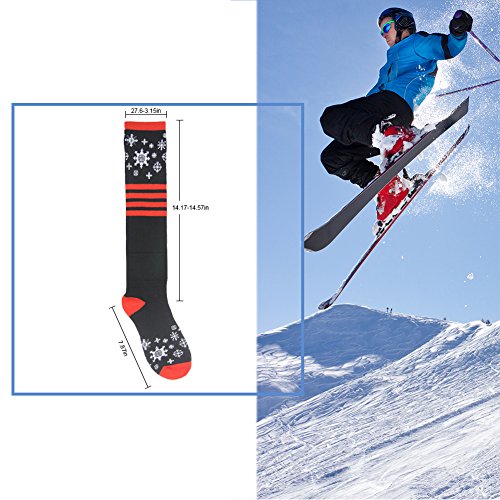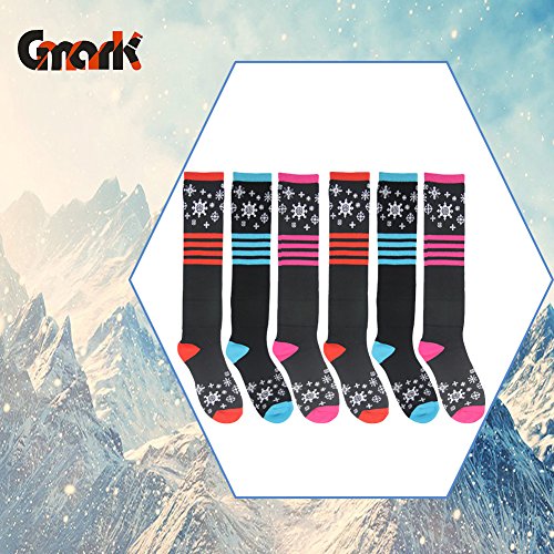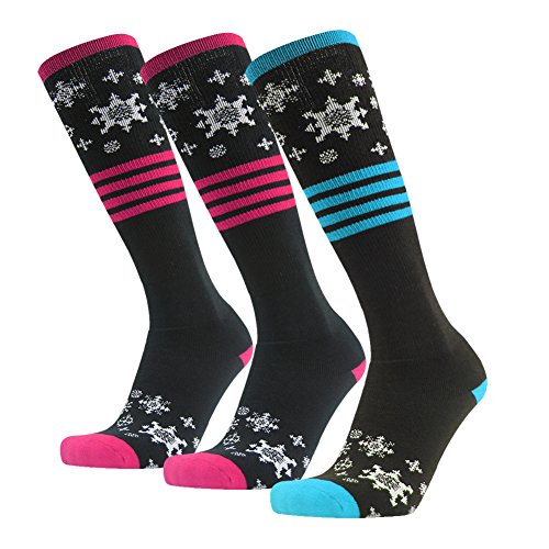 This colorful and novelty knee high snow performance sock is for girls, with detailed Snowflake images.