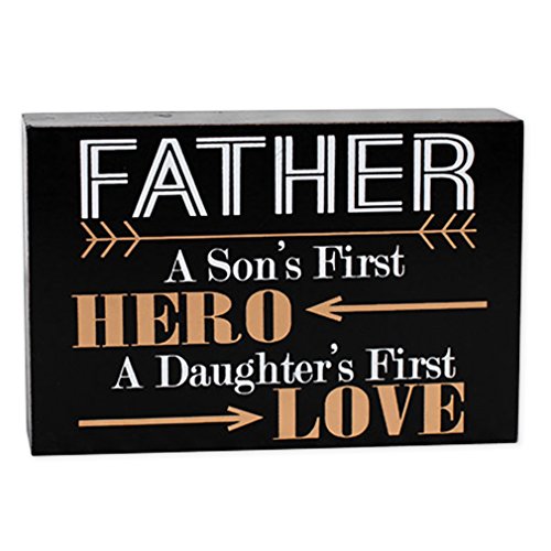 Father Sons First Hero Daughters First Love 4 x 6 Wood Block Table Top Sign