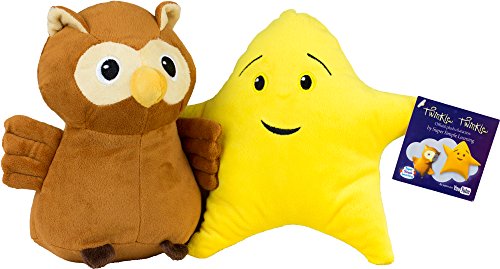 Super soft and huggable owl and star packaged together in one poly bag. Official plush toys for the beloved YouTube video from Super Simple Songs, Twinkle Twinkle Little Star. Owl: 9.5 in. tall, 10 in. from wing tip to wing tip, 5 in. thick at base. Beaded base. Star: 10 in. tall, 11 in. from star point to star point, 3.5 in. thick. Beaded "feet". Made exclusively for Super Simple Learning by leading soft toy maker, Mary Meyer Corporation, the owl and star are safe for children of any age.Feature