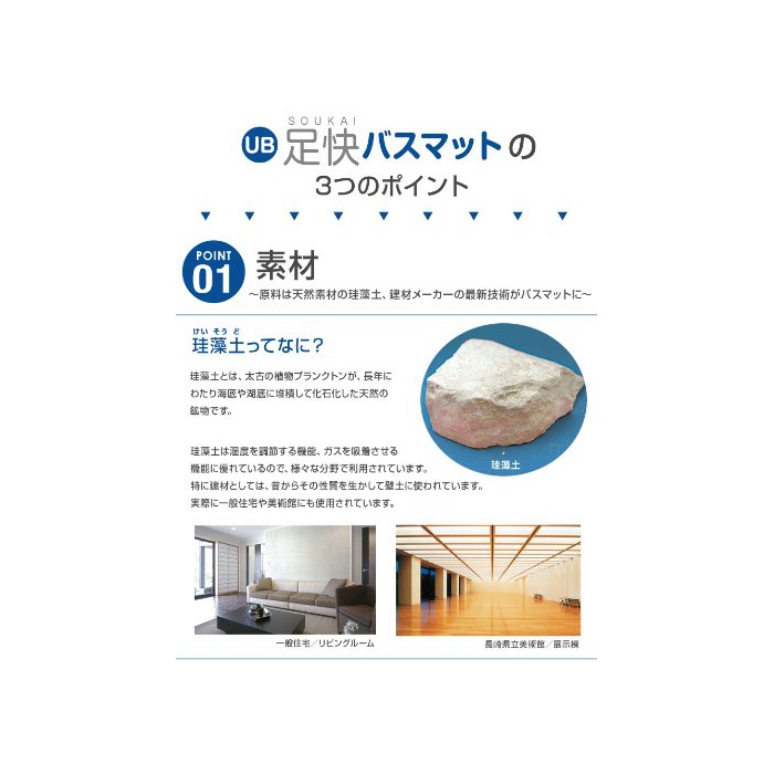 우베 건재 UB족 쾌버스 매트 규조토 일본제 noble 타일무늬