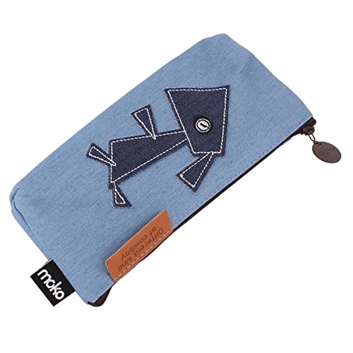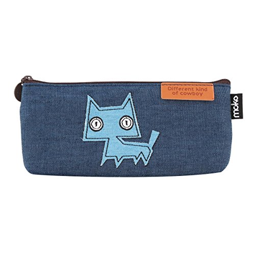 Damara Students Sewing Animal Denim Canvas Zipper Pencil Holder,Navy Blue,A