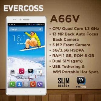 Vendor asal China, Evercoss kembali mengukuhkan eksistensinya dikalangan vendor berkembang dengan mengeluarkan smartphone Android Kitkat terbaru. Salahsatu yang menjadi perbincangan hangat akhir-akhir ini adalah seri Evercoss bernama A66V sebagai salahsatu seri dari seri-seri tablet sebelumnya. Selain untuk menghilangkan dahaga bagi para pecinta tablet, Evercoss A66V ini juga memanjakan para pecinta fotografi dengan tersematnya kamera 13 MP pada bagian belakang tablet yang siap menghasilkan gambar super jernih.