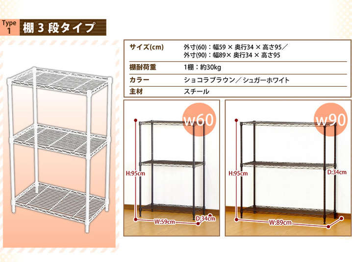 このページはメタルシェルフ 【-ラテ-】 60cm幅/3段のページです
