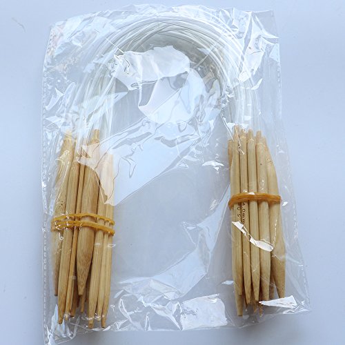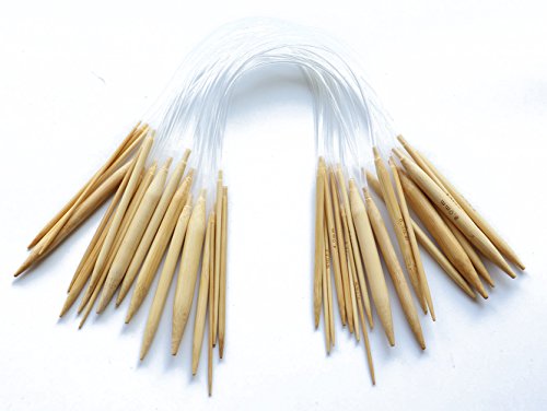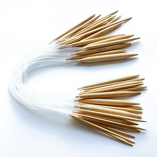 YEJI Set of 18 PCS Circular Knitting Needles Circular Bamboo Knitting Needles Set with clear Plastic Tube for larger knitted items such as sweaters.