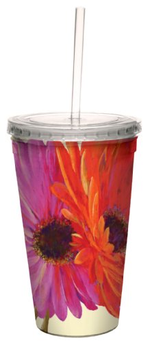 Tree-Free Greetings cc33706 Gerber Daisy Pair by Nel Whatmore Artful Traveler Double-Walled Cool Cup with Reusable Straw, 16-Ounce