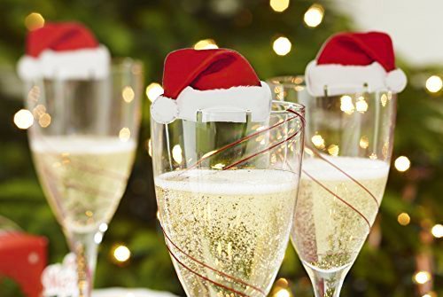 DECORA 12 Piece Mini Santa Claus Hats Christmas Champagne Glass Cards Xmas Paperboard Table Decor for Christmas Party Supply
