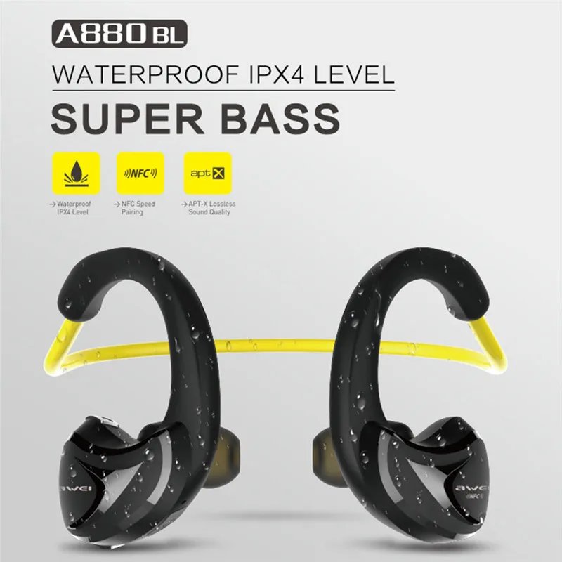 Awei A880BL Wireless Sports Earphones headphone Bluetooth V4.0 Earhook headset For Mobile phone