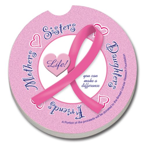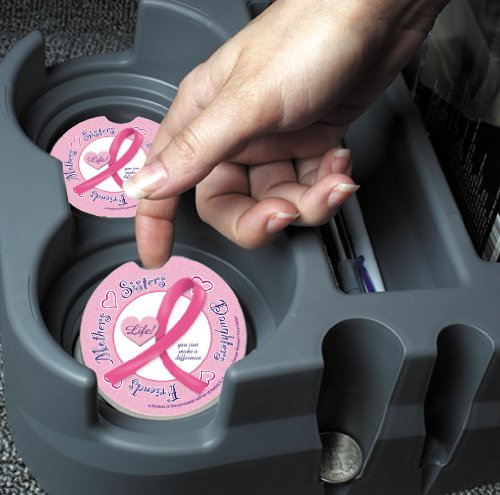 CounterArt Absorbent Stoneware Car Coaster, Pink Ribbon