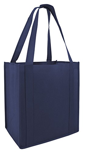 Reusable Grocery Shopping Tote Bags with Plastic Bottom Insert Reinforced Handles & Thick Plastic Bottom for Durability ( Set of 5 ) Heavy Duty - Hold 30+ lbs (NAVY BLUE)
