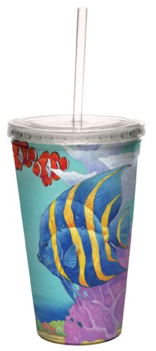 Tree-Free Greetings cc33418 Vibrant Tropical Fish by Paul Brent Artful Traveler Double-Walled Cool Cup with Reusable Straw, 16-Ounce, Multicolored