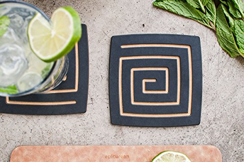 - Attractive and functional with integrated groves to collect condensation; slate color coaster with natural grooves