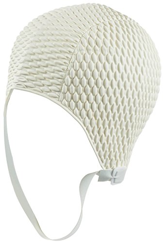 -. Feature : Soft and comfortable for hours of pool time / Snug fit with chin strap for comfort and warmth / Helps Protect Hair From Damage / One size fits all adults / Strechable Rubber makes cap easy to get on and off
