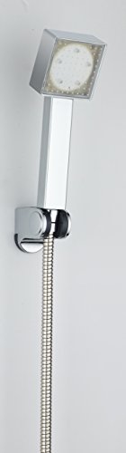 -. Feature : Keine Batterien notwendig, funktioniert über den Wasserdruck. / Wenn das Wasser fließt, zeigt die LED 3 Farben an, je nach Wassertemperatur: Grün (0-25ºC), Blau (26ºC-36ºC) und Rot (+36ºC). / Einfache Montage. / Anzahl der LEDs: 15, in 3 Gruppen aufgeteilt. / Inklusive Brauseschlauch aus Metall, ausziehbar von 170 cm bis 220 cm. Duschhalterung aus ABS, verchromt.
