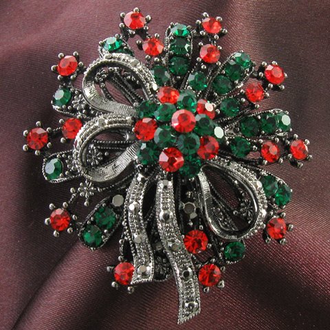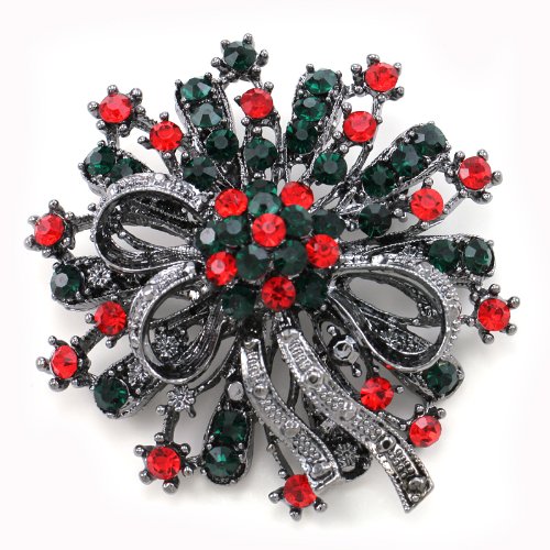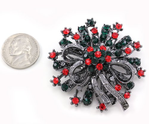 SOULBREEZECOLLECTION CHRISTMAS WREATH FLOWER RIBBON BROOCH PIN PENDANT NECKLACE COMPATIBLE