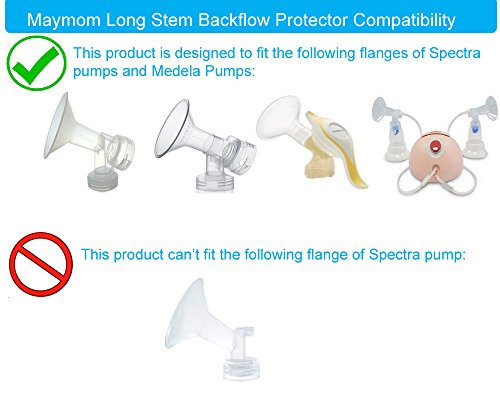 Maymom Backflow Protector, Long Stem, for Spectra S1, S2 and 9 Pumps to use Medela Flanges and Medela Parts; 2pc