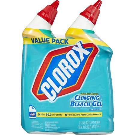 -. Title : Toilet Bowl Cleaner, Clinging Bleach Gel, Kills 99.9% of Germs and Eliminates Odor-causing Bacteria, 24 Ounces, 2 pack By Clorox