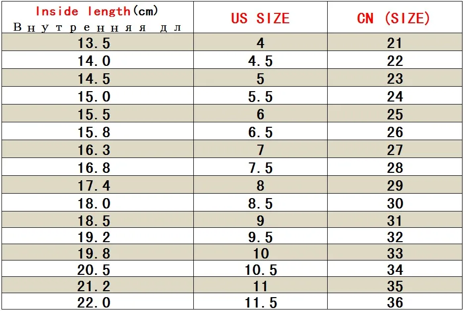 Foot length+1cm=inside length.Such as Pls measure your kid's foot length as below.IF her/his foot length is 11.5cm,you can add 1cm.That's to say,choose inside length 12.5cm.Thank you for your support.