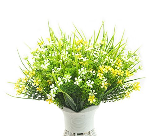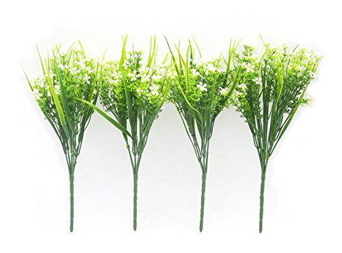 Artificial Flowers Plants, 4pcs Faux Plastic Shrub Bouquet Simulation Greenery Bushes Indoor Outside Home Garden Office Wedding Decor (JLX White)