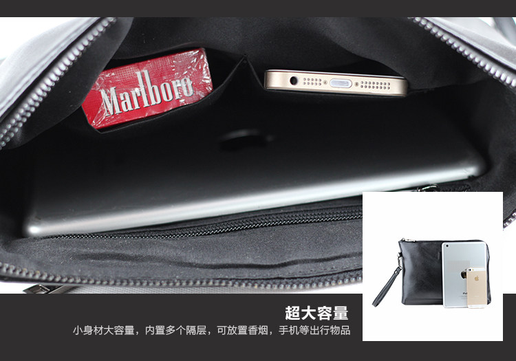 Material internal structure: zipper pocket cell phone pocket document bag