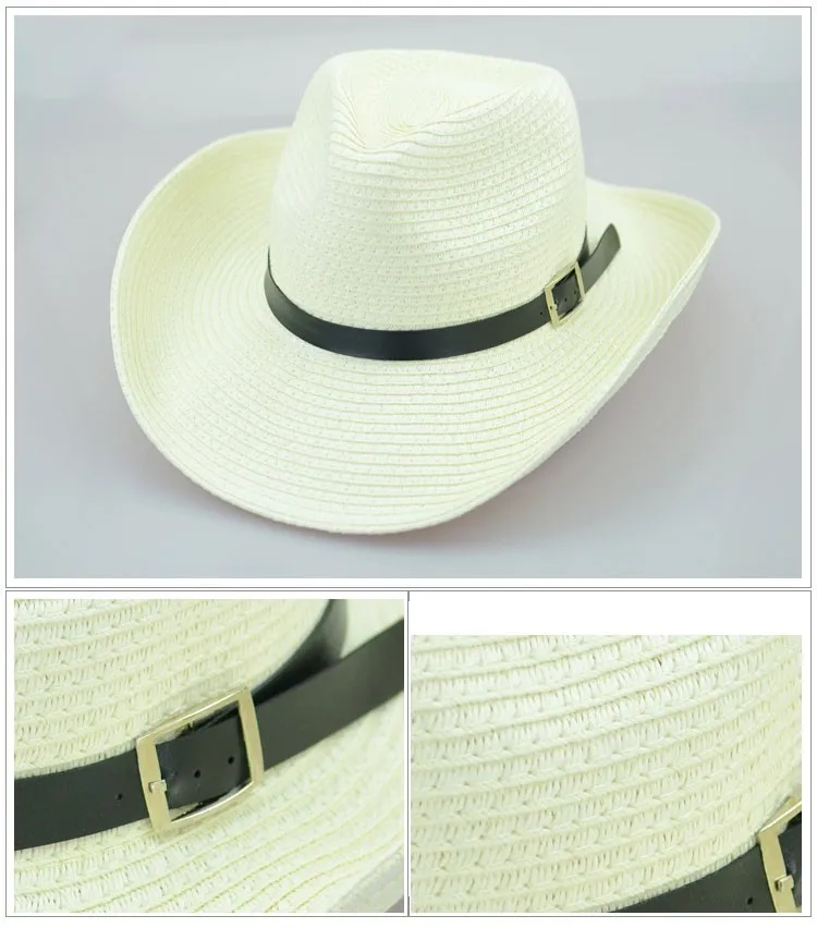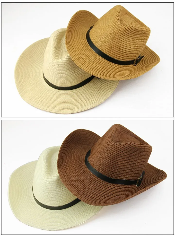 わら編み男性カウボーイ帽子付きバックル西部アメリカメンズ帽子固体カーキ