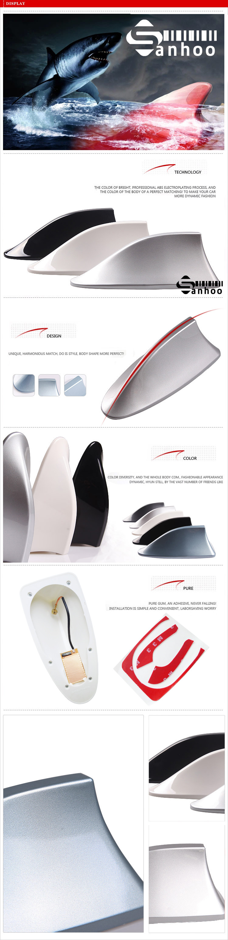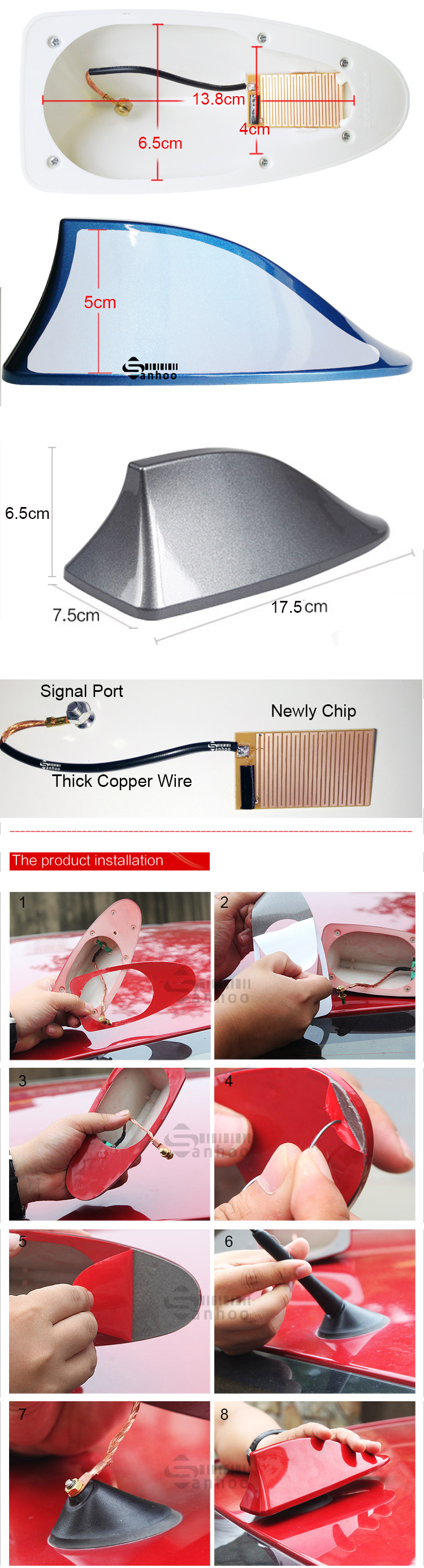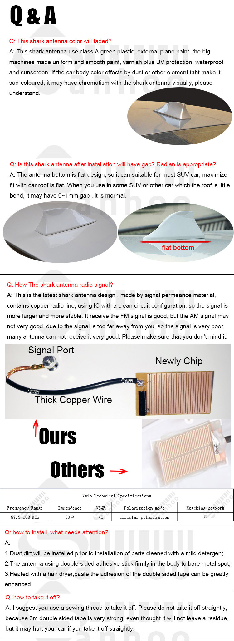 2.This shark antenna have the newly IC, will enlarge the radio signal, make it more clearly. You can see the video we showed to you.