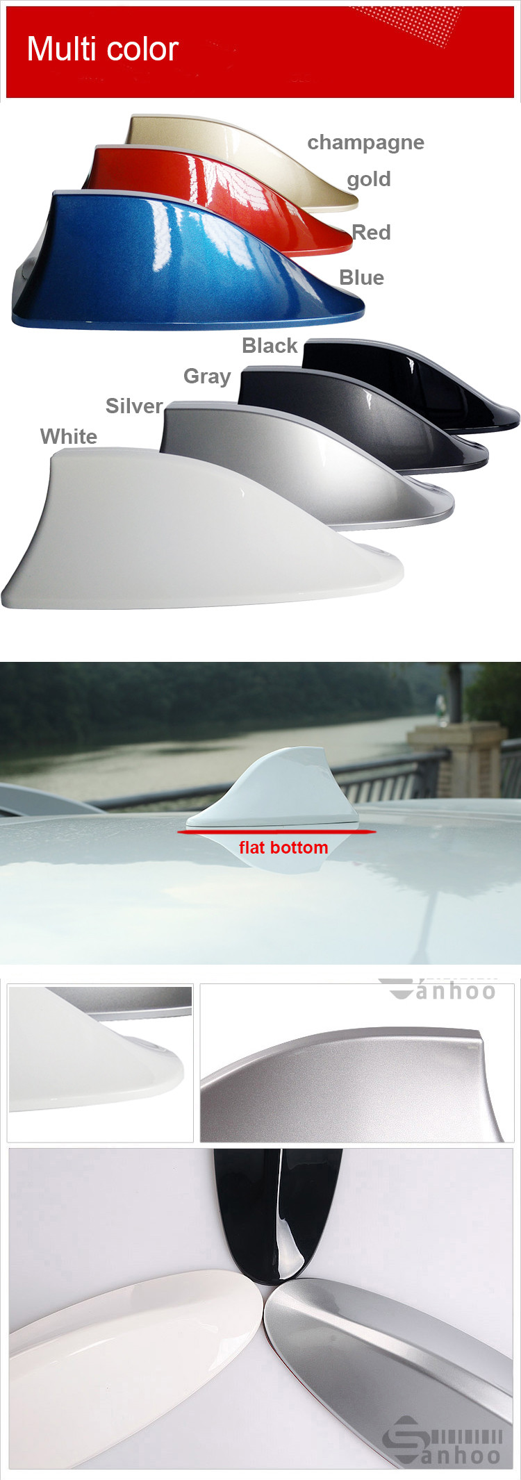 Sanhoo Car Shark Antenna with aerials (Flat bottom)