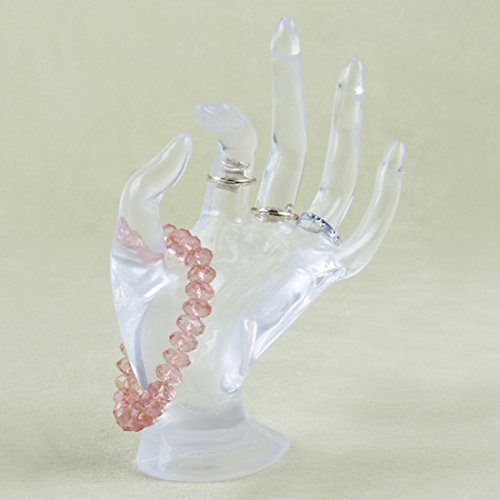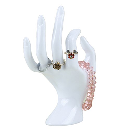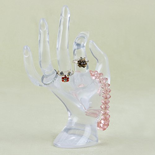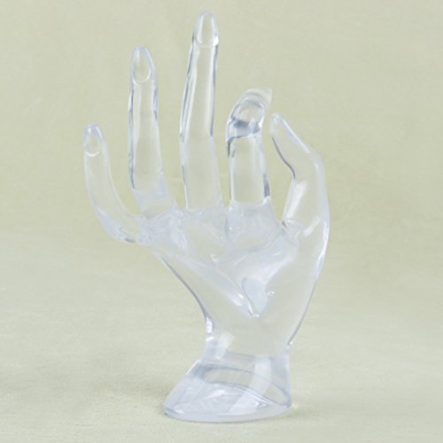 -. Feature : .This display design into a hand form so that you can hang your rings or bracelets for easy viewing / .Made of plastic and is designed with lational hand shape / .Beautiful appearance, display valuable bracelet, finger ring, wrist watch in shopwindow / .Exquisite and professional made, light weight to carry / .Practical for jewelry and watch retailers