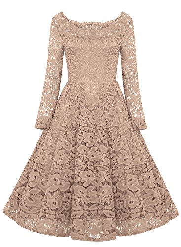 Womens Long Sleeves Floral Lace Bridesmaid Evening Party Gowns